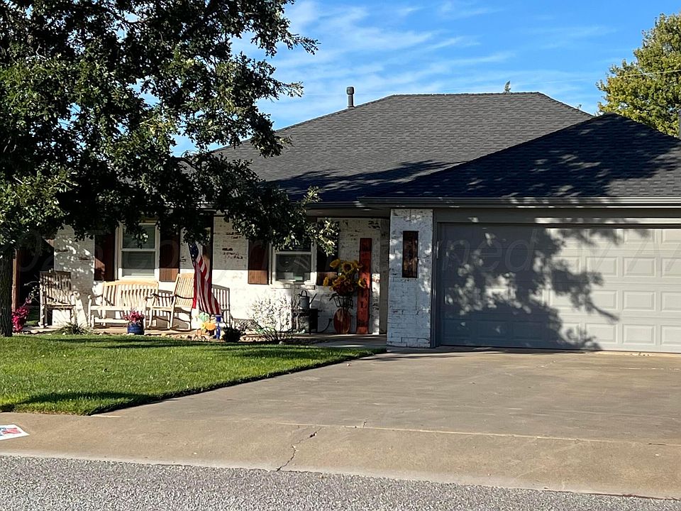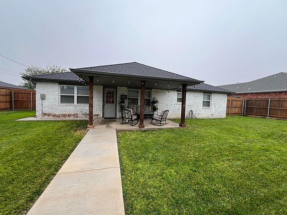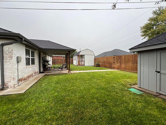 Super nice brick home with many updates. Has open floor plan with kitchen, dining, and living room all adjoining. 3 bedrooms, Hall bath is tub/shower combo, master bath has beautiful walk in shower. Barn doors. Storm cellar in garage, Covered front porch and patio. Yard sprinklers, 12 x 24 SHE SHED/Man Cave in backyard with electricity and heat/air, cabinets, counter tops, covered porch. Storage shed with shelving.