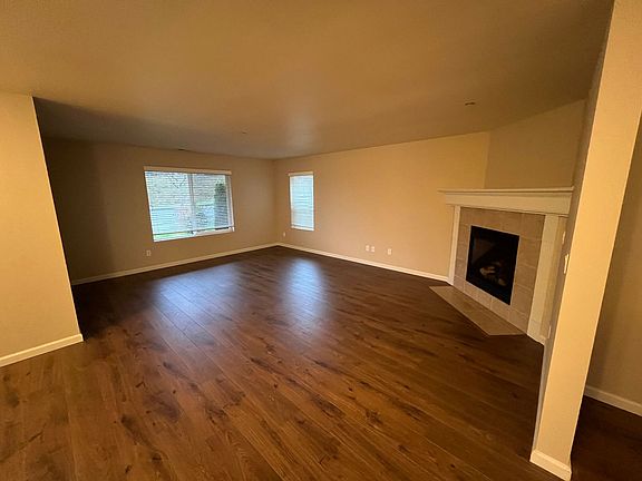 DuPont, 3 bedroom, 2.5 bathroom home with a loft and plenty of space to spread out! Cozy up next to the gas fireplace or sit on the big front porch. Large kitchen and pantry area Laminate flooring downstairs, carpeted upstairs. Fully fenced yard with a patio is perfect for entertaining. Attached 2 car garage with alley access. Large kitchen and pantry area. Washer/dryer hookups.