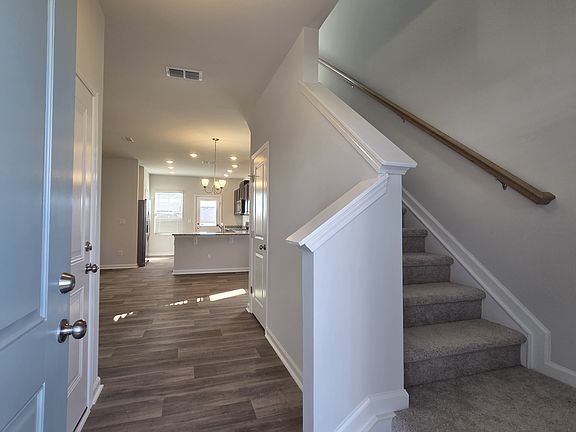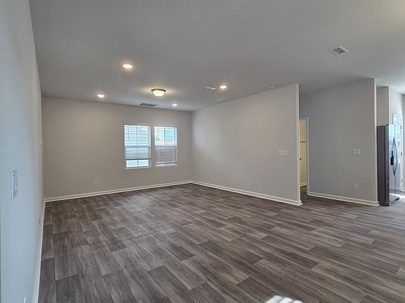 The first floor features an open-concept great room that flows into a bright kitchen and dining area ideal for entertaining or family gatherings. The kitchen comes equipped with stainless steel appliances and an included refrigerator. A first-floor bedroom and full bath provide a convenient setup for guests or a home office.