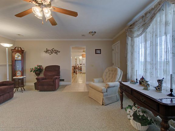 Awesome brick maintenance free ranch located just outside town limits. Minutes to area amenities and schools. Formal living, formal dining, large kitchen with lots of cabinetry, den with gas log fireplace, 15x15 master suite with walk-in closet and jetted tub, two additional family bedrooms. 10x28 screened porch. Detached 28x28 brick garage with cabinetry. Updates include architectural roof 2007, heat pump 2007, windows 2007. Great opportunity to purchase a quality home in a great location.
