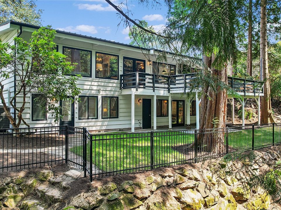 Fully remodeled West Bellevue 4BD/3BA home filled with abundant light due to skylights, new windows, and sleek white oak hardwoods. The open-concept features a chef’s kitchen with professional-grade appliances, soapstone countertops, dual dishwashers, and a marble wet bar. The elegant main-floor primary suite is paired with a second bedroom, while the lower level offers two additional bedrooms, a media room with bar, and a flexible gym space. Smart home systems control lighting, temperature, appliances & surround sound. Outside, enjoy a fully fenced backyard oasis that backs to a creek and lush natural setting. Upgrades include new metal roof, A/C, EV charger & backup generator. Moments to DT Bellevue, Kirkland, Redmond & top-rated schools.