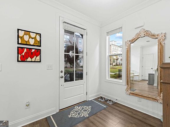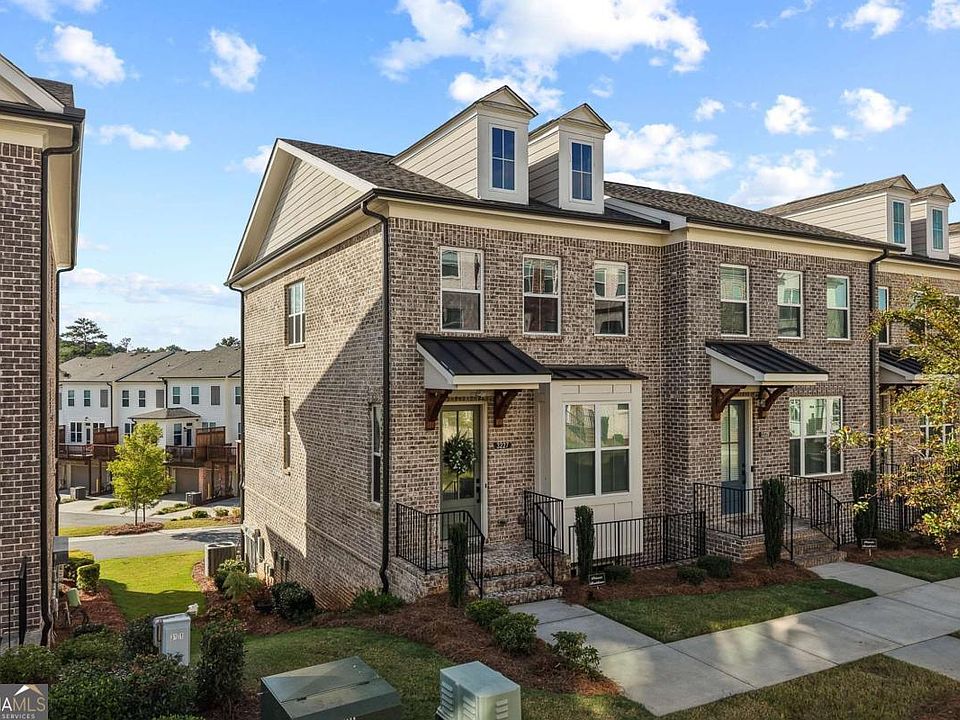 Better than new, this stunning modern townhome is located in the prestigious gated community of Ellington by The Providence Group. Built in 2022 and meticulously maintained, this Garwood plan combines sleek modern design with everyday functionality. From the moment you step inside, you'll notice the light-filled open concept floor plan enhanced by wide-plank LVP flooring throughout-no carpet anywhere! The spacious living room boasts contemporary upgraded lighting and a stylish fireplace framed by clean lines, creating a bright and elegant space perfect for both relaxation and entertaining. The designer kitchen serves as the heart of the home, featuring quartz countertops with waterfall edges, stainless steel appliances, a chic subway tile backsplash, and a newly replaced statement lighting fixture that elevates the space with a modern flair. The oversized center island offers ample seating and is ideal for gatherings or casual dining. Upstairs, each bedroom includes its own private ensuite bath, ensuring both privacy and comfort. The primary suite feels like a boutique hotel retreat-highlighted by a newly installed rainfall shower head, upgraded fixtures, and a spacious walk-in closet. The finished terrace level provides flexible living space perfect for a home office, guest suite, or media room, complete with a full bathroom. Enjoy your morning coffee or evening breeze on the oversized private deck, and appreciate the details such as the epoxy-coated garage floor and timeless brick exterior that blend durability with modern sophistication. As an end-unit, the home offers additional windows that fill each room with natural light, emphasizing the bright and airy modern aesthetic. The Ellington community enhances your lifestyle with resort-style amenities including a sparkling pool and playground, all within a secure gated setting. Conveniently located near Suwanee's scenic greenway trails, parks, shopping, top-rated schools, and I-85, this home perfectly balances modern living, comfort, and convenience. Experience the elegance of Ellington living-schedule your private showing today!