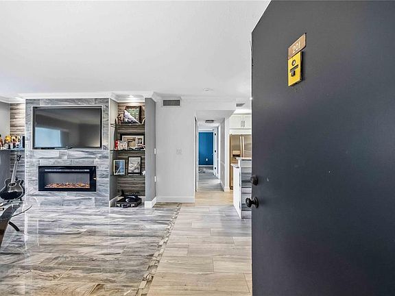 Welcome to Village Brooke Condominiums! This hidden gem is tucked away from traffic and noise and surrounded by oak-covered roads, lakes with gazebos, two community pools, lighted tennis courts, pickleball, shuffleboard, grill areas, and a clubhouse—while still being centrally located near all daily necessities. The unit also includes designated parking for added convenience. This completely remodeled second-floor condo features high-end finishes and thoughtful upgrades throughout. The living room showcases Italian porcelain tile, a custom entertainment center with an electric fireplace, and a dry bar. Additional updates include new paint, doors, lighting, fans, crown molding, and baseboards. A screened-in lanai allows natural light to fill the space. The kitchen offers brand-new stainless steel appliances, upgraded blue granite countertops, subway tile backsplash, a granite sink, bright cabinetry, a large pantry/storage closet, and a breakfast bar that opens to the dining room. Down the hallway, an additional storage closet, two bedrooms, and two full bathrooms. Both bedrooms accommodate a king bed, feature upward crown lighting, and overlook green space. The slightly larger primary bedroom includes a custom closet with a built-in safe. The wall between the two bedrooms has been tiled for soundproofing, privacy, and an elevated design finish. Both the primary en-suite bath and guest bath feature large walk-in showers with rain showerheads, sliding glass doors, updated vanities, new toilets, and Italian porcelain tile with mosaic accents. Both bathrooms also include upgraded exhaust fans with Bluetooth speakers for music or podcasts. Just outside the front door is an additional storage closet, and at the bottom of the steps is one of the community’s fenced-in pools with lounge chairs, picnic tables, restrooms, and a pergola—perfect for enjoying Florida weather. The number of amenities included for such a low fee is rare in this market. There is truly nothing like this condo available—schedule your showing today! Location Highlights: • 4 miles to Siesta Key • Under 1 mile to the Legacy Trail • Less than 0.5 miles to numerous restaurants, salons, pet stores, Walgreens, Starbucks, major banks, HomeGoods, gyms, Walmart, Publix, medical centers, golf courses, gas stations, and more