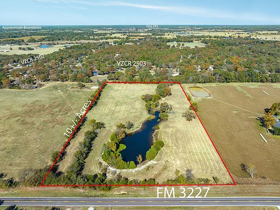 Really nice 10 MOL acres located on FM 3227. This parcel is nicely squared up with permeter livestock fencing. Very large pond that has large catfish and sunfish (per seller). There are a couple of really nice home sites on this piece of property, surrounded by improved pastures and mature trees. Electricty is at the road and this site will require a well for water. There are no known restrictions.