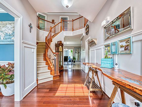 This gorgeous Belmont model has over 5,300 sqft. of finished space. Fall in love with the diverse layout, perfect for entertaining, getting comfy in the sunroom flooded with natural light, open living/dining/kitchen space for all activities, watch a movie in the theater room, play in the game room, create in the craft room, exercise in the gym area or work in the home office. Enjoy meal preparation in the gourmet kitchen, which features a large sized island, spacious pantry, granite counter-tops, stainless-steel appliances, double wall oven, dishwasher, and built-in microwave. Entertain and enjoy the outdoors relaxing on the composite deck, located off the sunroom. The inviting and open 2-story foyer has hardwood floors with a curved staircase leading to the upper level. Upper level includes four spacious bedrooms and two full bathrooms. The large primary ensuite features dual separate walk-in closets, soaking tub, large walk-in shower, separate water closet and linen closet. The lower level features a wet bar with refrigerator, large theater room, game room, office, a 5th bedroom with built-in closets, a full bathroom, storage room, and gym area. Home is wired for surround sound. Garage has extensive built-in storage shelving. The community features a playground and basketball court. Well maintained, wonderfully landscaped exterior featuring irrigation system and invisible fence installation. This home is beautiful and immaculate.