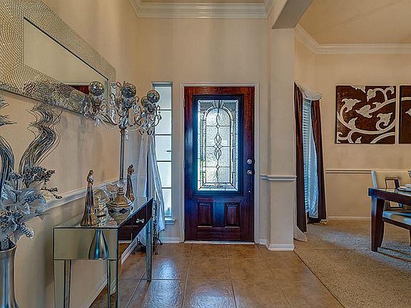 Don't miss the opportunity to see this beautiful home! Its located on a corner lot and includes a covered patio, spacious rooms with plenty of closet space, kitchen includes granite counters, stainless appliances, lots of counter and cabinet space for the cook in the family; Cozy Dual fireplace for the formal living room and family room, elegant formal dining room, one bedroom covered to a fabulous theater room, and large master.