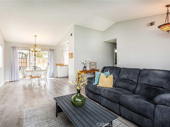 Welcome to this charming single level 3 bedroom home with fantastic curb appeal and move-in condition! Lovingly maintained with attention to detail. Spacious living room with fireplace and vaulted ceilings that adjoins the dining area. Kitchen features views toward large rear yard with plenty of grass and gated dog area. Enjoy easy to maintain laminate wood flooring throughout all of the living area and bedrooms. This beautiful home also features a new driveway, concrete pad for rear patio entertaining, roll up garage door and is located with easy freeway access and close to shopping and restaurants.