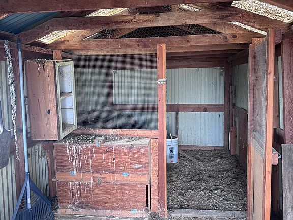 The property includes a chicken coop with a fenced run and a pig pen, making it ideal for families interested in small-scale farming, caring for animals, or teaching children responsibility through hands-on experiences. Located on a quiet, low-traffic country road, the home provides a peaceful environment with beautiful views overlooking 35 acres of open farmland.