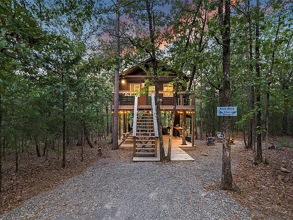 Big Cedar Wilderness Cabin development is situated in the heart of the Kiamichi Mountains with deeded easement access to the Ouachita National Forest and home to a newer Airbnb Super host Treehouses. 3 years of operation has generated over 500 five-star reviews. The luxuriously appointed  Bluebird Treehouse is uniquely placed on 2.5 acres and secluded in a pine and hardwood forest. Great care was taken to ensure privacy. The spacious cabin enjoys unparalleled treetop views with a wrap around porch. Step inside and you have vaulted ceilings, an open concept featuring a king bed, queen sleeper sofa, flat screen tv, full kitchen and a spa inspired bathroom with soaking tub and separate shower. The upper deck has a gas grill and space for outdoor dining. The lower deck is perfectly outfitted with a swinging bed, suspended swinging chairs, hot tub and fire pit. This southeastern Oklahoma mountainous region is home to black bear, deer, wild turkey, wild hog, coyote, mountain lions and many other animals. Despite the close, easy highway access, the property is adjoined by approximately 1.6 million acres of national forest laced