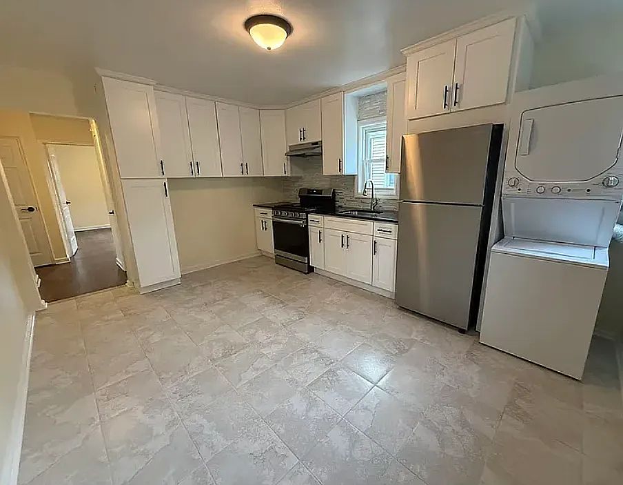 Spacious 2nd-floor apartment in Bayside with hardwood floors. The unit features a functional kitchen with ample cabinet space, a large living area, generously sized bedrooms with closets, in-unit washer and dryer, and mini-split ACs in every room for efficient cooling and heating.