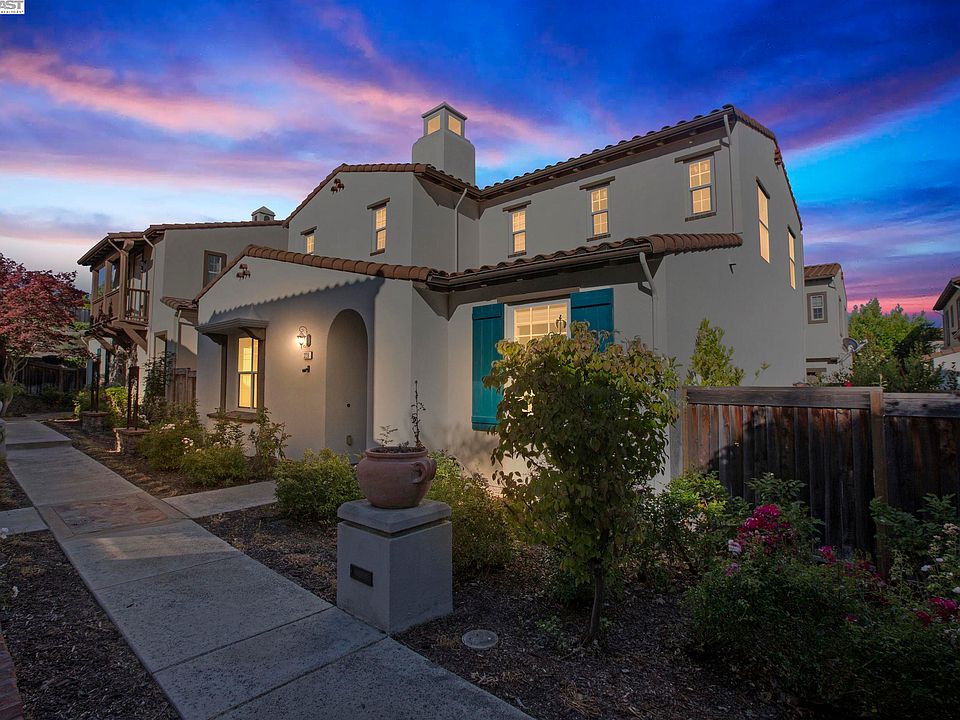 Beautiful Gale Ranch Home located in the Veranda neighborhood. Close to community pool & top rated San Ramon Schools. This ideal floor plan has a downstairs bedroom & downstairs full bath w/standing shower perfect for your guests. Upgraded with Hardwood flooring in entry, dining room & kitchen, textured Berber carpeting, ceiling fans in all bedrooms, & EV wall outlet in garage. Spacious living room has abundant natural light & beautiful fireplace w/mantle. Large dining room with slider to backyard and easy access to kitchen. Chef's kitchen w/large center island w/breakfast bar, granite countertops, tiled backsplash, stainless steel appliances including a gas range, built-in microwave & large pantry. Primary suite has an amazing spa-like bathroom w/separate dual sinks & vanities, custom built-in storage and make-up vanity, large soaking tub, two closets & standing shower. Two secondary bedrooms are spacious and share a hall bathroom with a shower/tub combo. Upstairs laundry closet with washer & dryer included and storage cabinets. Low maintenance yard with paved patio, perfect for dining al fresco. HOA has a beautiful community pool & spa w/lots of shade for on hot summer days. Don't miss this exceptional home!