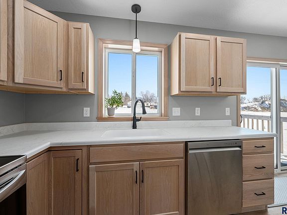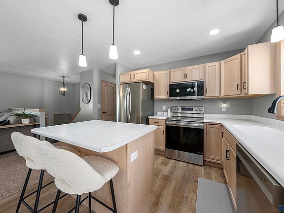 Check out this fantastic home in a new neighborhood in NW Sioux Falls. Only one year old but shows like new construction! The main level features a large open concept great room. The kitchen has beautiful light wood cabinets, a large center island and stainless steel appliances. The dining room features sliders to the deck and easy access to the backyard. The living room is spacious with room to entertain. Two bedrooms and a full bathroom complete the level. The basement was just finished in late November and has never been lived in! Huge family room with an attached den / office / toy room for you to enjoy. The lower level also has one additional large bedroom and full bathroom. Sod and sprinkler have been installed! There is nothing to do but move right in!