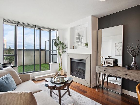Welcome to Olive by Cressey, where Cambie Village meets Mount Pleasant. This bright, efficient open-concept home offers stunning Northern mountain & city views. The sought-after Cressey kitchen boasts solid wood cabinets, deep granite counters, stainless steel appliances, gas cooktop, wine fridge & full-sized fridge. Enjoy the cozy living room with electric fireplace, plus a spacious balcony spanning 19ft wide - accessible from both the living room & bedroom. CONCRETE construction, large windows, in-suite washer/dryer, 1 secured parking stall & storage locker are included. Prime location—steps from restaurants, cafés, shops, Heather & Douglas Parks, VGH, Broadway Skytrain. This is the urban lifestyle you've been waiting for!