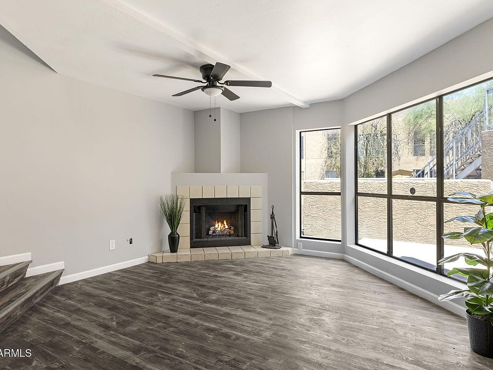 Don't miss this beautifully updated 2 bed, 2.5 bath townhome! Freshly painted throughout, including cabinets, with sleek quartz bathroom countertops and a brand-new stainless steel stove, dishwasher, and water heater. The unique two-level layout offers excellent separation of space—two spacious en-suite bedrooms upstairs, and a lower level featuring a cozy living area with fireplace, modern kitchen with pantry, half bath, and private patio. Community amenities include a refreshing pool. Move-in ready!