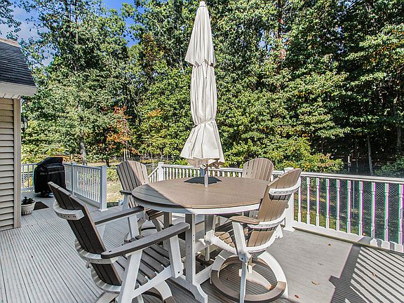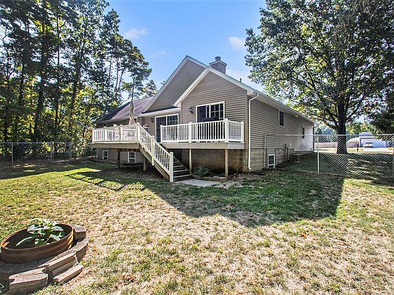 Fenced-in backyardPeaceful and private settingLarge back deckOverlooks the woodsCozy wood-burning fireplace