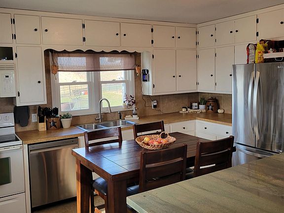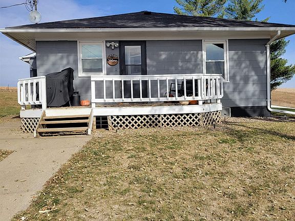A one of a kind acreage available right here in Audubon County! You can enjoy the peace and quiet of the country, but you will also have easy access to Exira, Elk Horn, and Interstate 80. This ranch style home offers 2 bedrooms and bathroom on the main level with a 3rd nonconforming bedroom and bathroom downstairs. The Master bedroom includes a large newly remodeled walk in closet. New windows, carpet, and flooring and updated throughout! Enjoy a large flat backyard along with 3 detached garage stalls. Outbuildings and fencing included. Large circle driveway and area to park. Enough room for large farm equipment or commercial vehicles. Outbuildings include large areas for storage and/or livestock along with an insulated shop.