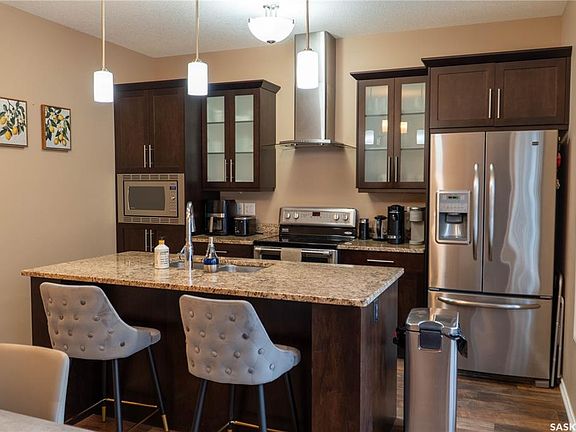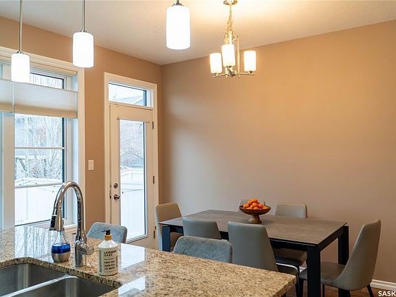 If you are looking for an elegant and well-maintained condominium in Regina’s north end, consider 108–3229 Elgaard Drive in the desirable community of Hawkstone. Upon entry, you are greeted by quality finishes and a modern, cohesive color palette. The main floor features attractive linoleum flooring and large windows that bring in plenty of natural light. The functional kitchen includes stainless steel appliances, espresso maple cabinetry, and granite countertops, along with a spacious dining area. A comfortable living room, a convenient two-piece powder room, and garden doors leading to a private backyard complete the main level. Upstairs, the primary bedroom offers a generous layout with a walk-in closet. Two additional bedrooms and a four-piece bathroom make this home suitable for families, guests, or roommates. The lower level is open for future development, giving you the opportunity to customize the space. Additional highlights include central air conditioning, two dedicated parking stalls, low condo fees, and ample visitor parking.
