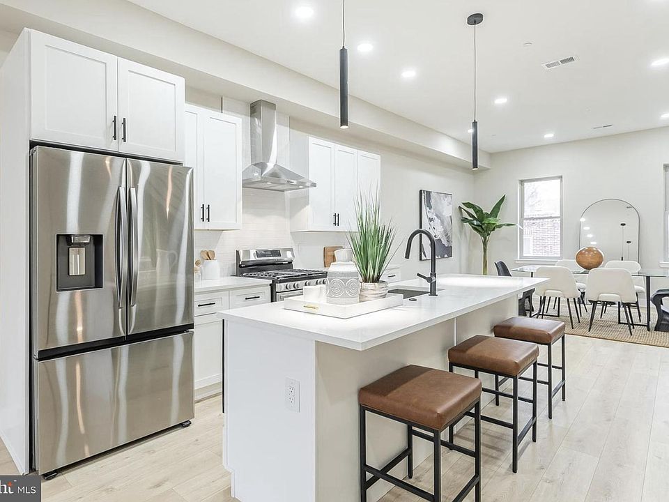 Welcome to 3229 Mercer Street, a luxurious 3-bedroom, 3 full-bath home with private garage parking, located in the heart of Port Richmond. Upon entering, you'll find a generously sized bedroom on the first floor featuring an en-suite bathroom. This level also provides access to your private garage, as well as a fully finished basement that can serve as convenient additional living space or extra storage. Head upstairs to the main living area an expansive open-concept space featuring wide-plank hardwood floors, soaring 10-foot ceilings, and abundant natural light. The true chef's kitchen boasts a large center island with a breakfast bar and custom pendant lighting, Samsung stainless steel appliances (including a dishwasher and built-in microwave), and ample soft-close cabinetry. The dedicated dining area and spacious living room flow seamlessly to a large private balcony through sliding glass doors perfect for indoor-outdoor living. Follow the floating staircase, accentuated by custom lighting, to the upper level. Here, you'll find the luxurious primary suite and a third bedroom. The spacious primary suite offers dual closets, plenty of room for a king-size bed, and a spa-like en-suite bathroom. Finally, take in 360-degree views of the city from the rooftop deck an ideal space for entertaining guests and watching summer fireworks.