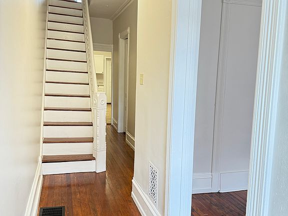 The large eat in kitchen leads to a huge backyard with a modern horizontal set privacy fence, perfect for back yard barbecues! House has central air and washer/ dryer in the basement. Large front porch.