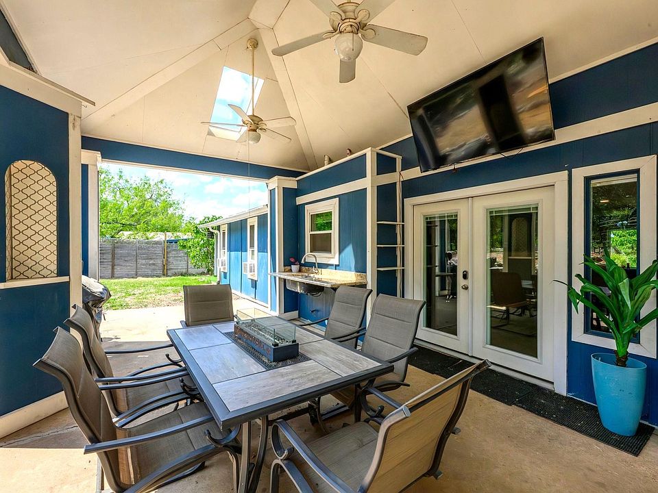 Set on a near quarter-acre picturesque lot, this renovated residence blends modern style, recreational space and tranquility in sought after Oak Plantations! This exceptional residence has 3 bedrooms, 2 full baths, a modern kitchen, an inviting living room, a luxurious primary bath, a large covered entertainment porch, a covered side porch for work or recreation, and a cool home gym! The chef will enjoy the updated kitchen with granite counters, white cabinets, newer Samsung appliances, and a walk-in pantry. This home was made for entertaining with a huge dining area, and a grand covered back porch with a built-in cook’s work station and a large screen TV area, and all overlooking the enormous rolling green back yard. Every detail of the home is designed to inspire a modern and relaxed lifestyle. The living room is supremely inviting with a white brick fireplace, and a picture window overseeing the landscaped front yard. Retreat to the primary suite and a stunning wow-factor primary bath with a granite dual vanity, a lavish soaking tub, and a spacious walk-in shower. Guests will enjoy the modern white-tiled secondary full bath and contemporary vanity. Other impeccable details of the residence include new windows, updated fixtures, recessed lighting, contemporary flooring, barn doors, all cedar closets, a modern exterior, and a newer roof, HVAC and water heater. The fantastic garage home gym is negotiable, or can be removed. A true jewel of the home is the vaulted covered back porch with 2 skylights, 2 ceiling fans, and a grill area--all perfect for relaxing with a serene private view of the expansive backyard. Stellar location, less than 5 miles to DT Austin, and close to Brodie and Wm Cannon shopping, bars and restaurants! A HUGE bonus, only a few blocks from Longview Park and the hiking trails in the 147-acre Stephenson Nature Preserve! This exceptional residence in Oak Plantations extends a living experience of vibrancy, harmony and tranquility.