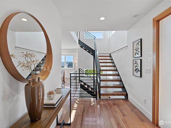Welcome to Westbridge, a boutique gated community known for its luxury homes. A prime location near restaurants, West Seattle Bridge, & Alki Beach, offering the perfect gateway. This meticulously crafted home features 4 beds & 3.5 baths. The Great Room is filled with abundant natural light and showcases beautiful wide-planked hardwood floors. The chef's kitchen is a dream, complete with luxury appliances. The primary suite is a private retreat, featuring spacious walk-in closet & a spa-like bath. Lower level offers a huge family room & gym with walk-out access to a fenced, low-maintenance yard & covered patio. The roof deck provides breathtaking views of the Seattle skyline, mountains, & Elliott Bay! Seller offering $7,500 for rate buydown.