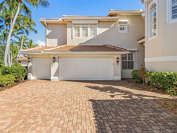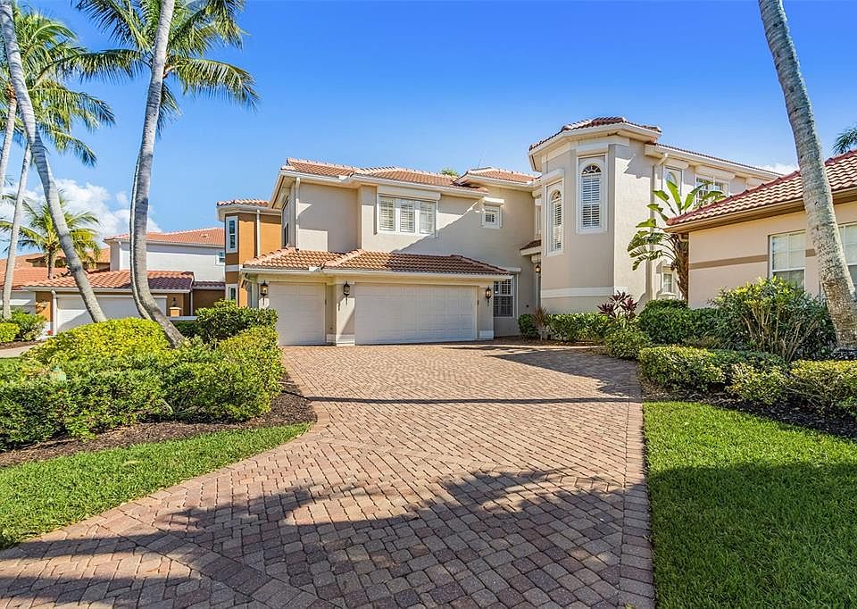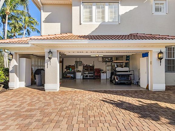 Discover exceptional waterfront living in this dramatic two-story residence overlooking the Marina’s sought-after South Basin. One of many exclusive homes with with leased dock space directly behind the property, this turnkey-furnished haven combines rare boating convenience with refined interior finishes and a low-maintenance lifestyle. The home features a new 2024 roof, fresh exterior paint, hurricane-rated garage doors, and full motorized hurricane shutter storm protection. A pavered drive, landscaped walkway, and rare three-bay garage set the tone for spacious, elegant living. Inside, soaring 20' volume ceilings, abundant natural light through large windows, crisp plantation shutters, and hardwood flooring create an inviting and elegant ambiance. The well-appointed kitchen features solid granite counters, Subzero refrigerator, Viking wall oven and microwave, a center island with Viking cooktop and downdraft vent, 42” cabinetry, and a charming breakfast nook with dry bar, mini fridge and wine storage overlooking the pool and marina activities. Two enclosed lanais—both finished with hurricane-rated sliders and Mitsubishi AC systems—extend the living space on each level. Open them wide to enjoy outside on cooler days. The ground-floor lanai opens to a pavered pool deck and free-form pool, perfectly positioned to watch boaters come and go. A leased dock is being reserved for Buyers to park their boat right outside for quick access to a day on the water. Upstairs, a dramatic balcony walkway overlooks the main living area and leads two large bedrooms. The primary suite offers panoramic water views, a private air conditioned lanai retreat, ensuite bath with dual vanities, jetted tub, spacious glass-block shower, and two walk-in closets. A second ensuite guest room functions beautifully as a second primary suite. The main level also hosts a third bedroom, adjacent full bath, dedicated den/office/media room, and a charming half bath/pool bath. Additional highlights include: diamond-set tile in select areas, crown molding, French doors to lanais, laundry room with sink and extra cabinetry, updated mechanicals, and a monthly $490 fee covering all landscaping and cable TV. Set within an exclusive gated community inside Burnt Store Marina, you’ll enjoy resort-style amenities in this waterfront location with a la carte services such as a fitness center, tennis and pickleball complex, 27-hole executive golf course, activity club, yacht club, Freedom Boat Club, and two onsite restaurants – all accessible by golf cart. Create your own lifestyle while making new friends along the way. With the fastest access to open water in Southwest Florida, you can boat all day and play all night. This is an extraordinary opportunity to own a true waterfront retreat. You deserve it!