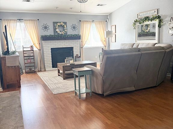 Start planning your holiday season in style with this beautifully updated home in desirable Southwest Visalia! Offering 1,396 sq ft of open concept living space, this charming residence combines comfort, function, and fantastic outdoor amenities perfect for entertaining or relaxing year-round. Inside, you'll find 3 bedrooms and 2 bathrooms, thoughtfully designed with a modern touch. The home features attractive laminate flooring throughout, creating a seamless flow from room to room. Each bedroom is equipped with ceiling fans, ensuring a comfortable living environment during all seasons. The living area opens into a bright and airy kitchen and dining space, ideal for hosting gatherings or enjoying family meals. Step outside and you'll be amazed by what this 7,500+ sq ft lot has to offer. The beautifully landscaped front and back yards are well maintained and provide ample space for outdoor activities. Your backyard oasis includes a sparkling swimming pool perfect for cooling off during hot Central Valley summers as well as a covered patio and a charming cabana, making it easy to host barbecues, pool parties, or quiet evenings under the stars. Additional highlights include a two-car garage, a location close to schools, parks, and shopping centers. This move-in-ready gem checks all the boxes for anyone looking to settle in a well-established neighborhood with all the extras already in place. Don't miss your chance to make this house your home just in time for the holidays