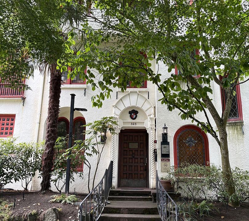 - Exterior features: 2 extra large storage closets, Beautiful original solid wood doors and moldings, Full bath with built in storage, Kitchen with space for table chairs separate from main living area., Near Shopping and Hospital, Old World Charm, Regrigerator, Secure Building Entrance, Spanish Style Building with Stained Glass windows