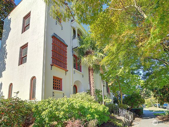 One of Seattle’s remaining Historic Spanish style bldings. This huge 920 sq ft corner top floor 1 bedroom home was built in 1929. Home boasts of many of its originals including stunning leaded glass windows, gorgeous light fixtures, hardwood floors, coved ceilings, beautiful mahogany door & trim, sweet Juliet balcony and corner electric fireplace for ambience. All w/ABSOLUTE CHARM throughout. Formal entry, spacious liv/din rms, 4 oversized closets, eating nook, updated appliances & W/D in unit. HOA covers W/S/G/radiate heat. Walk score 95. Near transit & light rail. Surrounded by everything necessary for all your comfort needs.