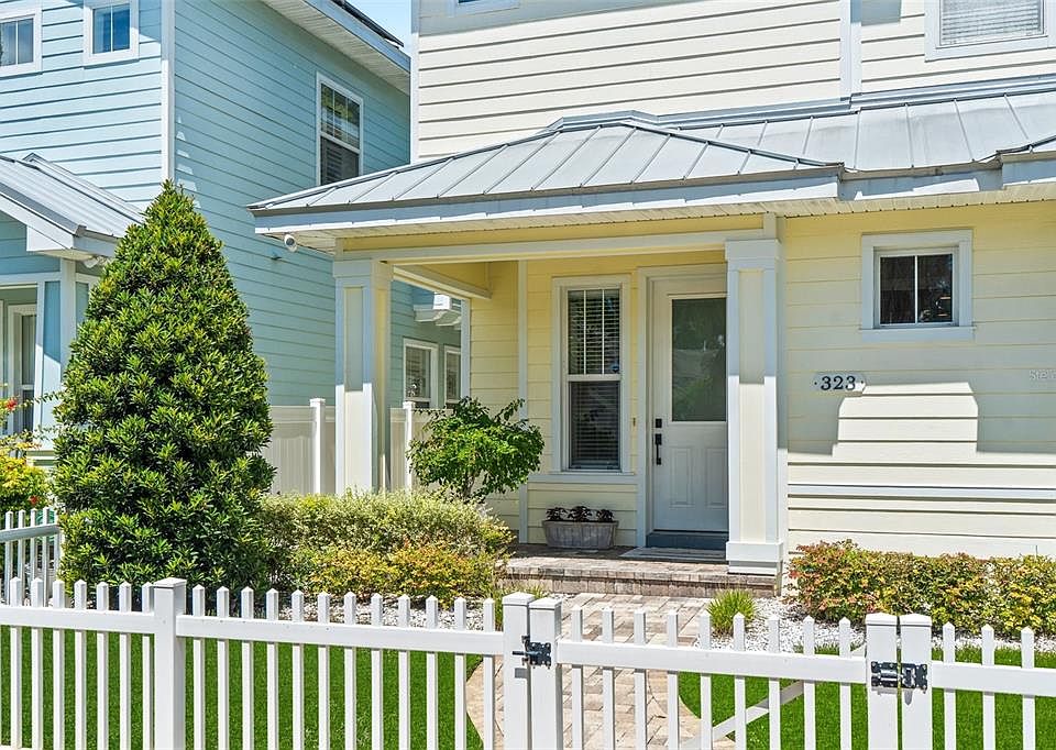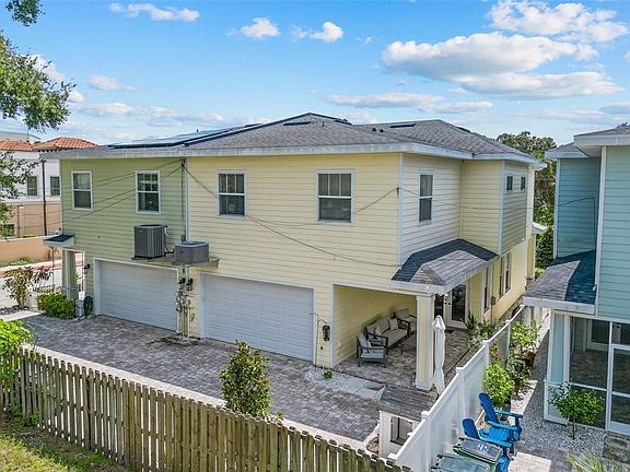 Discover the magic of Safety Harbor! An exceptional offering in the heart of Safety Harbor. Just a block from the enchanting downtown Safety Harbor, where brick-lined streets meet waterfront charm, this impeccably designed abode offers a rare opportunity to live steps from the vibrant cultural core of one of Florida's most beloved small towns. Walk, bike, or cruise your golf cart to acclaimed restaurants, boutique shops, art festivals, a world-renowned spa and open-air markets, all while enjoying the peace and elegance of the quiet residential streets. Free of HOA or CDD fees, this residence affords not just luxury, but freedom. Behind the refined façade, you'll find this single-family attached home, with four bedrooms, three full baths, a two-car garage, and an open-concept floor plan crafted with care and sophistication. Rich, dark wide-plank hardwood floors flow beneath soaring 10-foot ceilings, while grand eight-foot solid wood doors create an elevated sense of scale. The chef's kitchen is a statement in itself, featuring an oversized marble island, stainless steel appliances and a generous walk-in pantry, ideal for both everyday living and refined entertaining. French doors open from the living space to a tranquil, covered lanai, perfect for morning coffee or evening cocktails. A versatile first-floor bedroom or home office is accompanied by a full bath, offering ideal flexibility for guests or work-from-home living. Upstairs, a spacious loft serves as a perfect media room, study or lounge. Two guest bedrooms boast walk-in closets and share a thoughtfully appointed Jack-and-Jill bath. The expansive primary suite is a true sanctuary, featuring a spa-inspired en-suite bath with dual vanities, a soaking garden tub, dual-head walk-in shower, and an impressively sized walk-in closet. Designed by the builder with the future in mind, the home is primed with a dedicated shaft/space for an elevator, allowing for easy future installation. Offering both convenience and long-term livability, a rare and valuable amenity, this is more than a home — it’s an invitation to a lifestyle of charm, sophistication and walkable luxury in the heart of Safety Harbor.