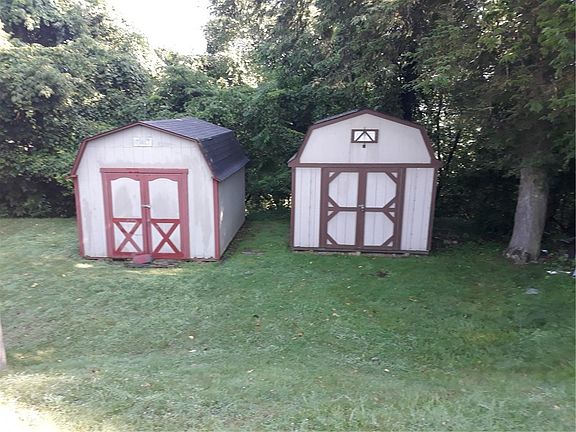 Has covered side porch for quite evenings. 2 sheds with front and back yards. basement wired for surround sound