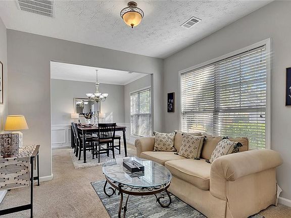 Welcome to Prominence Court, a community with clubhouse, greenspace, playground, and a neighborhood pool with splash pad. This traditional two-story home offers just under 2,000 square feet with 3 bedrooms and 2.5 baths. The open floor plan includes a formal living and dining room, a separate family room with gas fireplace, and a kitchen featuring stainless steel appliances, granite countertops, and a convenient two-car kitchen-level garage entry. Upstairs, the master suite features a bath with granite counters, double vanities, soaking tub, separate shower, and walk-in closet. A second-floor laundry room, fresh interior paint, and decorative wall niches add thoughtful detail, while hardwood floors accent the entry foyer. Outdoor living is easy in the fenced backyard with a covered and extended patio. With easy access to I-575, Downtown Canton, Downtown Woodstock, shopping, dining, and entertainment, this home offers comfort, convenience, and community.