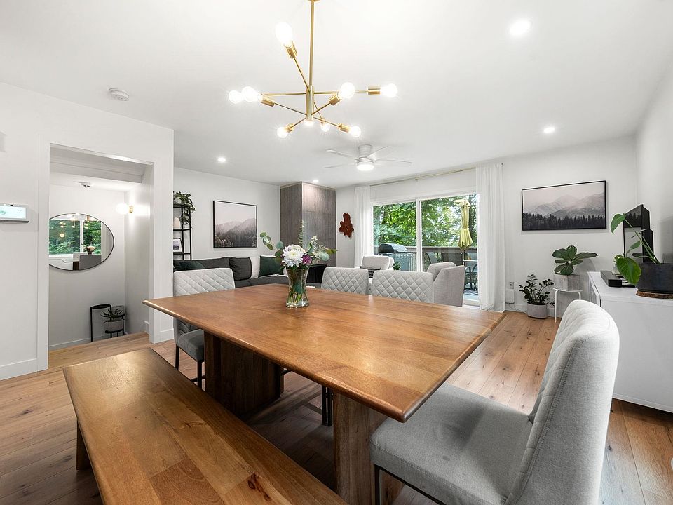 Absolutely gorgeous corner end unit surrounded by lush greenery for ultimate privacy. Beautifully renovated with wide-plank laminate floors, recessed pot lighting, a cozy corner wood-burning fireplace & new windows throughout. The elegant sleek kitchen features stainless steel appliances, new cabinetry & glass tile backsplash. You'll love the convenience of having 4 updated bathrooms, each with custom vanities & modern fixtures. Enjoy dinners on one of the main-floor BBQ decks before lounging in the spacious rec room with it's direct access to what is basically a huge back yard. The Evergreens is a well run family-friendly community with an indoor pool, sauna, new playground and many recent upgrades which include wiring, downpipes and exterior paint.