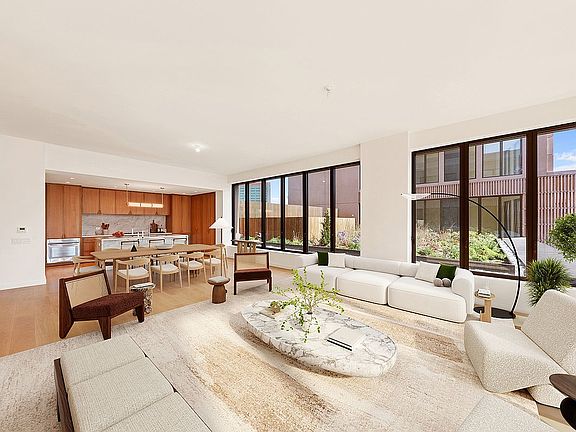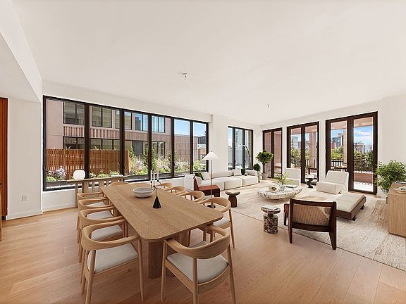 Perched above the tree-lined streets of Boerum Hill, Penthouse 601W feels less like an apartment and more like a retreat — a private resort in the heart of Brooklyn. From the moment you step through the formal foyer, sunlight filters across the space, illuminating the soaring 10’8” ceilings. The home unfolds gracefully — 2,740 square feet of effortless flow and calm — leading you toward an expansive corner great room framed by southeast light.