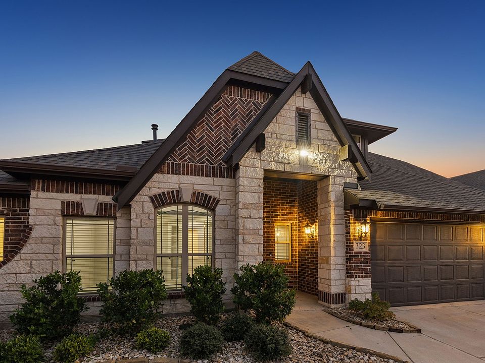 323 Bluewood Dr. offers 3047 square feet of elegant living space, perfectly designed to cater to modern and diverse lifestyles. A home that provides ample space for relaxation and privacy with a warm and inviting atmosphere. You'll be greeted by an entryway with a beautiful chandelier and office space with french doors separate from the rest of home. The layout is ideal for both entertaining and everyday living, featuring open and airy living areas that seamlessly connect to create a harmonious flow throughout the home.The heart of the home is the expansive living room, perfect for gathering with family and friends that is opens to to a kitchen with the family chef in mind, equipped with all the essentials needed to prepare delightful meals with gas cooktop, quartz countertops, island and ample storage. The bedrooms are serene retreats and all located on the main floor. Primary is great size and ensuite bath has dual head walk in shower, dual sinks, and walk in closet. Upstairs has both game and media rooms for flexible use or possibly a 4th bedroom. Wood like ceramic tile flooring in main spaces downstairs for easy maintenance without giving up style. The property offers a great setting for outdoor enjoyment. Whether it's enjoying a morning coffee on the patio or hosting a barbecue using your covered space wired for TV and gas line that is ready to connect your grill and never worrying about an empty tank again. Located in a vibrant community, this home is a true gem that combines comfort, style, and convenience with added extras like a water softening system and gutters with an attached French drain system. Neighborhood amenities include a fully equipped fitness center, fully equipped clubhouse for large events or parties, splash park, Olympic-size pool, cabanas, basketball courts, two dog parks, and more. Easy access to Lake Ray Hubbard, Downtown Dallas, HWY 30 and 161. Experience the perfect blend of lifestyle and tranquility when you call 323 Bluewood Dr. home!