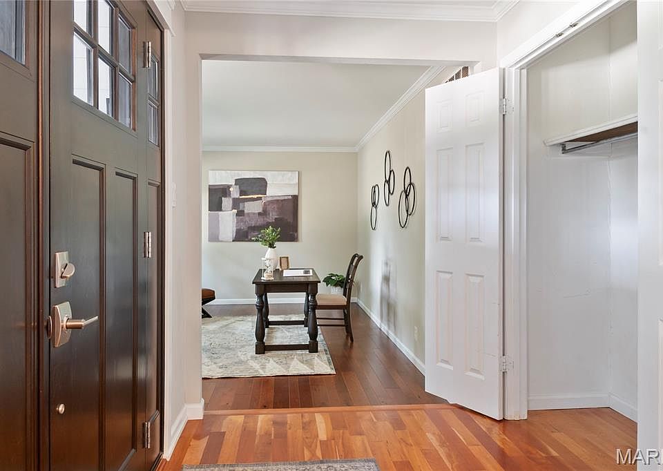 Welcome to this beautifully updated home offering timeless charm paired with modern amenities. Its curb appeal is unmatched, featuring an oversized driveway, an inviting porch with cedar columns, & a striking new front door. Inside, hardwood American Cherry floors & elegant crown moulding flow throughout much of the open-concept main level. The gourmet kitchen is a chef’s dream, showcasing custom cabinetry, marble and granite countertops, Bosch appliances, and a premium Wolf dual-fuel range. The spacious main-floor primary suite offers a walk-in closet and a stunningly updated bath with a custom vanity. Additional main-level highlights include a formal living & dining room, and mudroom/laundry area. Upstairs, you’ll find 3 generously sized bedrooms and a renovated hall bath with Kohler fixtures and a custom vanity. Brand-new hardwood floors run throughout the entire upper level, enhancing the home’s warmth and style. The lower level impresses with a finished recreation room, perfect for entertaining or relaxing, and an abundance of storage space to keep everything organized. Recent upgrades include a new foundation drain and sump pump, ensuring a dry and functional basement. Step outside to enjoy the new irrigation system, newer double-hung windows, new 2025 roof, and kitchen island countertop! Every detail of this home has been thoughtfully improved, making it truly move-in ready!