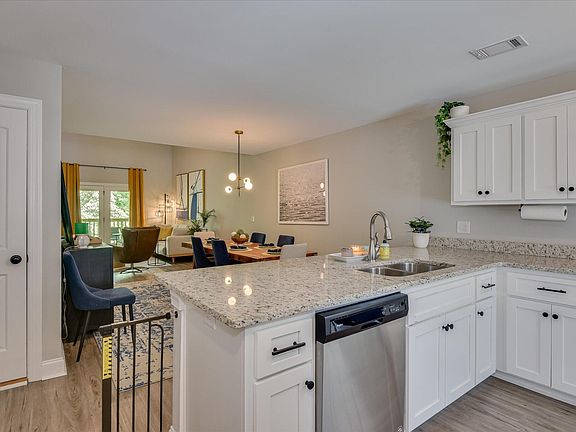 This meticulously updated townhome is one of the largest in the community. From the time you walk in you will note the designer level upgrades throughout. The kitchen features upgraded granite counter tops adorning custom white shaker cabinets, with a large bar that can comfortable seat 4. Open concept kitchen creates great line of sight to designer light fixture, dining area, living room, and serene backporch. The master bedroom is also located on the mainlevel, master bathroom has a custom double sink vanity with shaker cabinets, and granite counters.