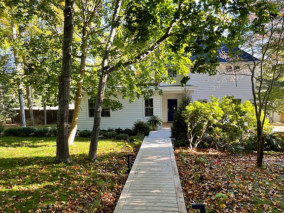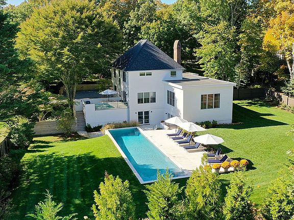 On a lushly landscaped and exceedingly generous 0.70 acre parcel in the heart of Sag Harbor Village, this recently renovated four bedroom transitional offers Main Street convenience without compromising on privacy and space. Sheltered by mature trees and built into the property's gentle grade, custom wooden boardwalks create a dramatic approach to the 5500 square foot home, clad in white, cedar clapboard, and designed by the resident architect. Beautiful layering of rear decking and patios create magical outdoor spaces around the oversized 50-foot heated, gunite, salt water pool complete with outdoor shower and a walkout lower level cabana. The gourmet, eat-in kitchen with top of the line appliances has an easy flow the outdoor spaces for al fresco dining and effortless entertaining. Bright and voluminous common areas with designer touches characterize this thoughtfully conceived home. The partially finished lower level offers additional opportunity to customize with a gym, media room, wine room, or any number of possibilities. Rare opportunity to own a turnkey home with exceptional outdoor space in Sag Harbor Village, with no car needed to enjoy the charms of Main Street, Harbor Market, and more.