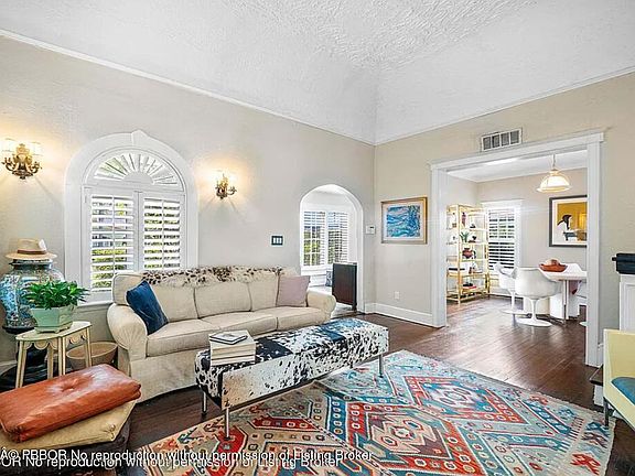 Enchanting 1926 Mediterranean style home with wonderful period details! The first floor has a living room that boasts 12 foot ceilings with a fireplace , there is a 19 foot florida room that gets flooded with Southern light, a formal dining room, kitchen, laundry room, and a den (that could be a third bedroom) and it has direct access to a full bath, porch and the pool area. There are 2 bedrooms upstairs with a full modern bathroom with tub. Outside there is lush and mature landscaping and a tropical pool, which was added in 2017. El Cid is considered ''The best neighborhood in West Palm Beach'', and this home is close to everything!