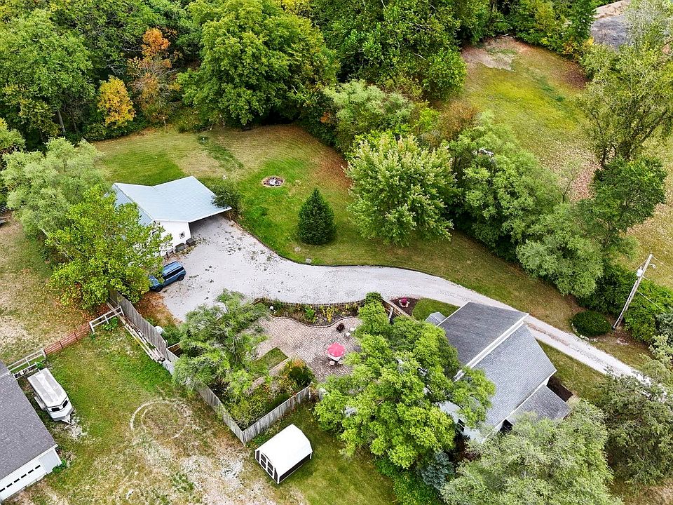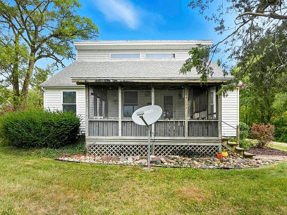 Discover the perfect blend of country living and city convenience nestled on 1.5 acres of partially wooded land. This property offers privacy, beauty, and endless ways to enjoy the outdoors—while being just minutes from town. Whether you explore the property’s nature trail with mature trees, relax on one of the benches along the peaceful stream, or entertain with a Fall bonfire, there's plenty of outdoor living opportunities with no HOA limitations. Step inside to find character and warmth throughout. The bright remodeled kitchen features real pine wood floors (original siding of the house), custom cabinetry, trendy island with barstools, stainless steel appliances, and a stylish tile backsplash. A recently opened wall creates an airy flow between the kitchen and the spacious living area, while the circular first-floor layout makes everyday living effortless. Upstairs, you’ll find a versatile loft-style second bedroom with an enormous walk-in closet—ideal as a bedroom, office, second living room, or storage space. The oversized first floor bathroom impresses with a double vanity, charming sitting area, and a private space for the shower and commode. The home sits on a full basement, professionally waterproofed in 2022, offering ample storage space or potential for future finishing. Enjoy peace of mind with newer windows (2017), newer roof (2015), new furnace (2025), and Aqua water purifier (2025), which is rented and transferable to the new owner. Enjoy morning coffee on the large screened-in front porch overlooking the private front yard, or entertain guests in the backyard retreat featuring a privacy fence, stone patio, and step-down wooden deck. Take advantage of the spacious two sided barn with large second-floor storage space, a side for a workshop or hang out space, and a large lean-to—perfect for storage, or extra parking. This property is a rare find, offering natural beauty, modern updates, and the best of both worlds: a serene country feel with city convenience. Minutes to interstate 69, and tons of shopping and restaurants.