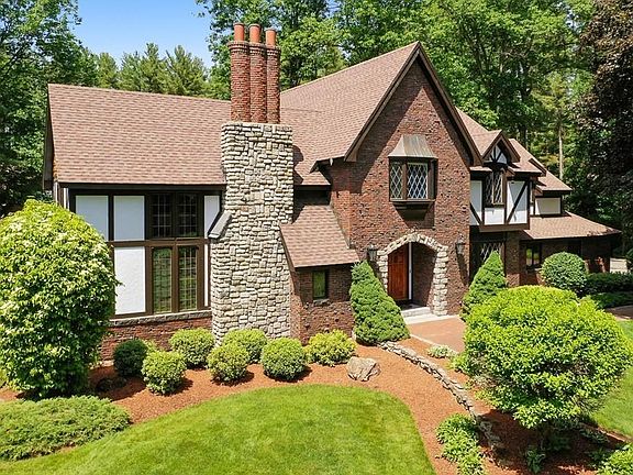 This 1 owner custom built English Tudor sits on 16+ acres of mature, professionally landscaped grounds. Once inside, appreciate the craftsmanship, character & updates this home has to offer. The tastefully updated EIK offers abundant storage space w plenty of light & views of the backyard. Continue to the LR with sliders onto the oversized back deck. The heart of the home is the stunning great room w grand fireplace & ornate staircase leading to the balcony library. The 2nd floor offers 3 generously sized BRs & full bath w private toilet & shower. In addition to these BRs is the spacious master w sitting area, walk in closet & updated bath w tiled shower. If more room is needed the massive basement is a perfect area to finish off. Another highlight of this property is the tremendous Carriage House w workshop, garage and plenty of additional space above for endless opportunities. A chicken coop in lower yard perfect for this right to farm community. Very private, yet accessible home!