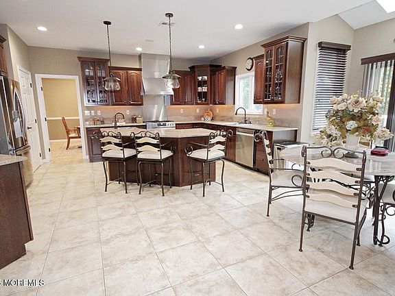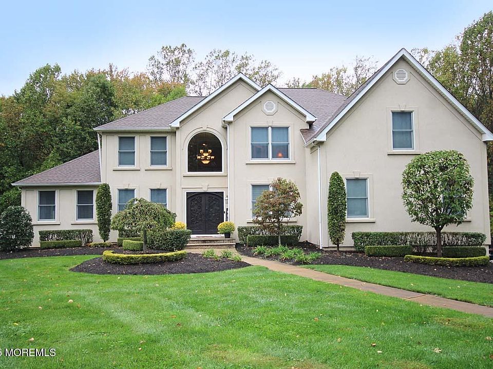 Custom 5 bedroom 4.5 Bath Luxury Home situated on 2 acres in Desirable Freehold Township . This 4,113 sq. ft Colonial has it all. Cherry wood kitchen cabinetry with center island and stainless appliances Spacious bedrooms, 2 Story Family room with wood burning fireplace, Conservatory, private office, 6 zone radiant heat, 2 zone central Air conditioning, Full finished 1,900 plus sq. ft walk out basement with theater room, gym, full bath, and extra kitchen for entertaining. The Country club backyard has stamped concrete, in ground pool , outdoor fireplace, Bar , sitting area, and surrounded by Orchards and preserved land. The driveway holds 15 plus cars and the garage was constructed with high ceilings for a car collector or sportsman.