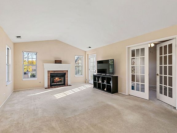 Custom gas fireplaceOversized balcony spaceOne car attached garagePrivate entrancePristine green spaceFrench doorsVaulted ceiling