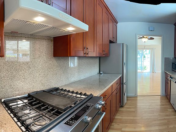 This home features upgraded kitchen with cherry wooden cabinets, Granite countertops, Stainless steel Viking dishwasher, kitchenAid gas stove and refrigerator, beautiful Pergo floors, double-pane window, freshly painted, laundry area with Electrolux washer/dryer in the garage and ceiling fans in each rooms.