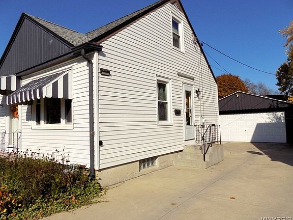 Open house-Saturday, Nov 8th from 1 pm to 3 pm. Offers due Monday, Nov 10th at noon. Welcome home to 323 Kirkwood! This charming Cape Cod is move-in ready and located on a quiet street in the desirable West Seneca School District. The bright, remodeled eat-in kitchen offers ample cabinetry and natural light, and all appliances are included — gas stove, refrigerator, washer, and dryer. Hardwood floors flow throughout the 1st floor, complemented by newer luxury vinyl flooring in the bathroom. Major updates over the years include windows, roof, hot water tank, and updated electrical service. Additional improvements feature new interior doors, sump pump, glass block windows, and a replaced back fence with gate. The maintenance-free exterior provides easy living, while the spacious 2.5-car detached garage includes a new electric door opener, extra overhead storage, and a concrete driveway. Enjoy the nearly fully fenced backyard with a small pool and space for a garden. Conveniently located near the Thruway and Route 400 entrances and just around the corner from a beautiful park. Low taxes--this well-cared-for home is a must-see!