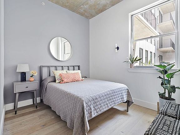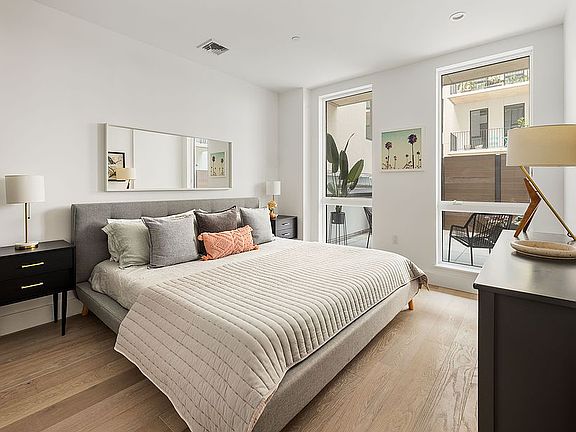 Comprised of 47 unique one and two-bedroom homes, 45 of which feature significant private outdoor space. Interiors are framed by up to 10' exposed concrete ceilings, floor-to-ceiling sound attenuated windows, and ash gray, wide plank, European oak flooring. Each layout offers a thoughtful balance of scale, utility, and flow. Kitchens are appointed with full-height, custom matte grey lacquer cabinetry, brushed stainless LG refrigerators with bottom freezer, integrated Blomberg dishwashers, and a 4 burner Blomberg gas range. Baths incorporate either glass-enclosed showers or Kohler soaking tubs, and neutral toned floors and wet walls in large format porcelain tile. Full width mirrors, custom storage vanities, and contrasting matte black fittings complete the package.