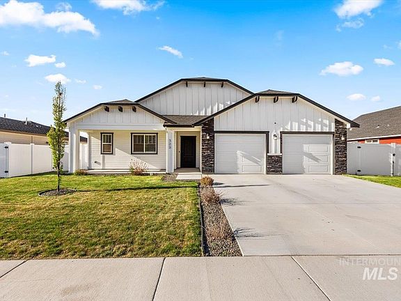 Only 3 years old, this beautifully maintained home is located in one of Fruitland’s most desirable subdivisions. The clean, classic white exterior offers great curb appeal or a blank canvas for your personal style. Enjoy a fully fenced backyard with a huge 100' x 20' graveled RV parking pad and large gate access. Covered patio is perfect for morning coffee or evening relaxation. Inside, a wide hallway opens to a spacious great room combining kitchen, dining, and living areas—ideal for modern living. The kitchen features quartz counters, soft-close cabinets, a pantry with coffee bar, and abundant natural light. Pride of ownership shines throughout the neighborhood. Bonus: the lot behind is privately owned with no plans to build, giving you added privacy and a touch of country feel. Rare RV parking and no back neighbors EVER—this home has it all!