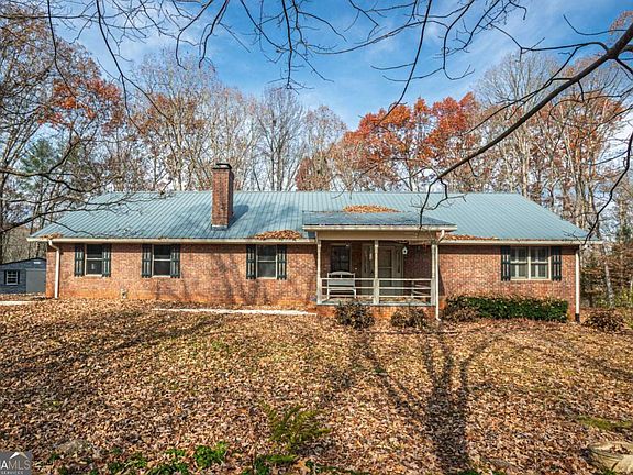 Beautiful 4BD/3BA all-brick ranch on nearly 2 wooded acres with a totally repainted main floor and gorgeous seasonal views! Enjoy 3/4-inch thick real hardwood floors, solid-surface countertops, travertine backsplash, custom solid-oak cabinets with slide-out shelving, smooth ceilings, crown molding, plantation shutters, and upgraded LED lighting/fans. The living room features a brick fireplace with a Carolina wood stove insert. The daylight walk-out terrace level offers two large bedrooms, a remodeled full bath, workshop, and abundant storage. Expanded outdoor living includes a low-maintenance 1,100 sq ft TREX deck with both covered and open areas, plus fenced backyard access perfect for pets. The home is equipped with whole house surge protection, a 500-gallon propane tank valued at $1,000, Navien commercial tankless water heater, and a Carrier HVAC system with UV air purifier and a commercial-grade 4-inch filter. A 12'x16' custom workshop with 220 power and a large entrance is also included. Fantastic location walking distance to North Georgia Tech and only minutes to historic downtown Clarkesville. Well maintained and move-in ready!