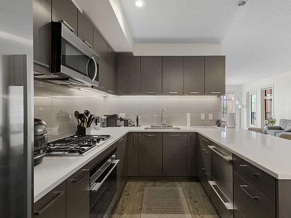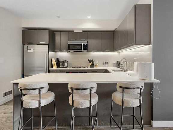 This suite is a rare offering — featuring 3 bedrooms, 2 bathrooms, and a titled indoor parking stall — all nestled in vibrant Mission, one of Calgary’s most walkable and desirable neighbourhoods. The open-concept layout flows beautifully, with a bright 24’-long living area separating the primary suite (complete with a walk-through closet and sleek modern ensuite) from the two additional bedrooms. The kitchen impresses with espresso cabinetry, luminous white quartz counters, stainless steel appliances, gas cooktop, and modern under-cabinet lighting. Wide-plank flooring, 9’ ceilings, and a sunny southwest-facing balcony with gas hookup elevate the living experience. Tribeca offers exceptional comfort and convenience with BuiltGreen Platinum technology, double party walls, secure bike storage, car wash, generous indoor visitor parking, and beautiful communal gardens. Pet friendly and perfectly located — walk nearly everywhere. The hip, urban location is second to none.