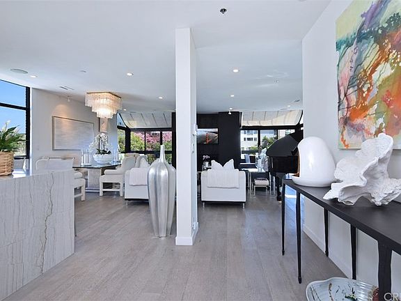 Stunning Contemporary Beverly Hills Penthouse with breathtaking views from every window. Beautifully remodeled with high end finishes throughout. Spacious, bright open floor plan living room with hardwood floors, fireplace, and 2 balconies overlooking Jacaranda treetop views and the Hollywood hills. Gourmet kitchen with quartz counter tops, large breakfast bar and a joining office area. Fabulous master suite, with fireplace, private dressing room and luxurious master bathroom with separate sauna. Two additional generously sized bedrooms, large second bathroom and guest powder room. Laundry In unit. Private security keyed elevator with direct entrance to Penthouse. 3 SIDE BY SIDE PARKING, and lots of storage in the garage along with a charging station. Available furnished at an additional price.